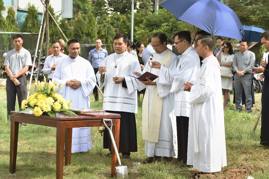 Before the Mass, Fr. Hoàng, MSC, the superior of the MSC community in Vietnam, presided over the blessing ceremony for the construction’s beginning of the second building of the MSC Scholasticate. This is a crucial milestone in the development of the congregation in Vietnam, and is an important project to meet the needs of training future MSC religious.